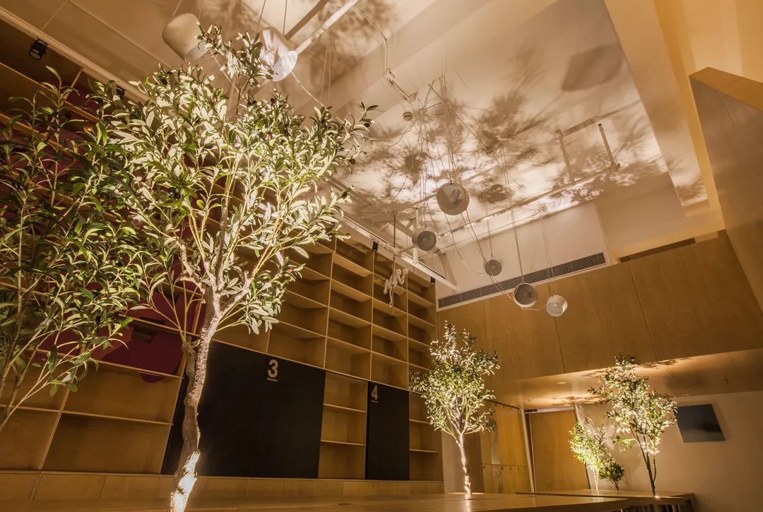 辦公桌與樹的結合,成為了整個空間的內景觀,也與外面的綠色形成呼應,消減以往辦公的緊張氛圍。整墻的書架也不甘無趣,在實用的框架下,產生一絲波動的起伏,如同山崖,如同坡面。