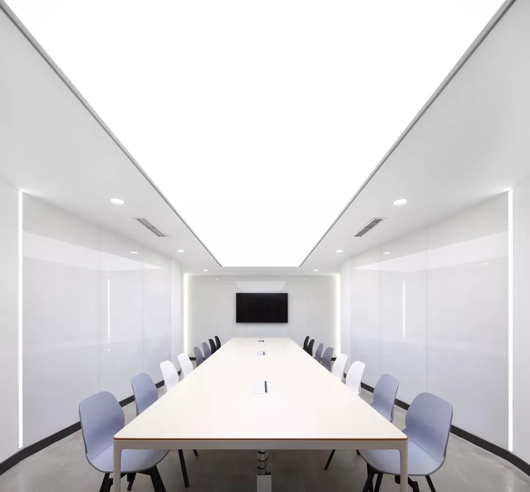 最新完成的整層辦公區(qū)延續(xù)了主體風(fēng)格,少了花俏的點綴,更多地使用色彩碰撞來提振精神,比如亮橙色開放會議間與品牌VI的臟灰色搭配。也首次嘗試了全白色調(diào)的通透會議室,算是對極致風(fēng)格的小探索。