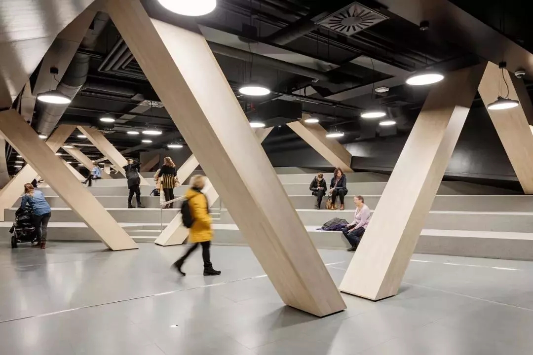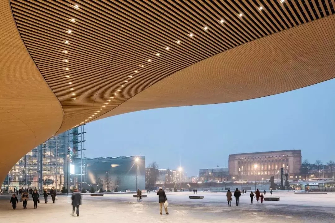 但其實(shí)據(jù)設(shè)計(jì)頌歌的主建筑師之一南安迪(Antti Nousjoki)講,靈感的出發(fā)點(diǎn),還是在于考慮它的功能。作為一個(gè)地處赫爾辛基市中心,毗鄰熱鬧商圈、火車站和美術(shù)館的公共空間,能夠給市民們帶來(lái)什么樣的服務(wù)?又能填補(bǔ)哪些缺失的城市設(shè)施?