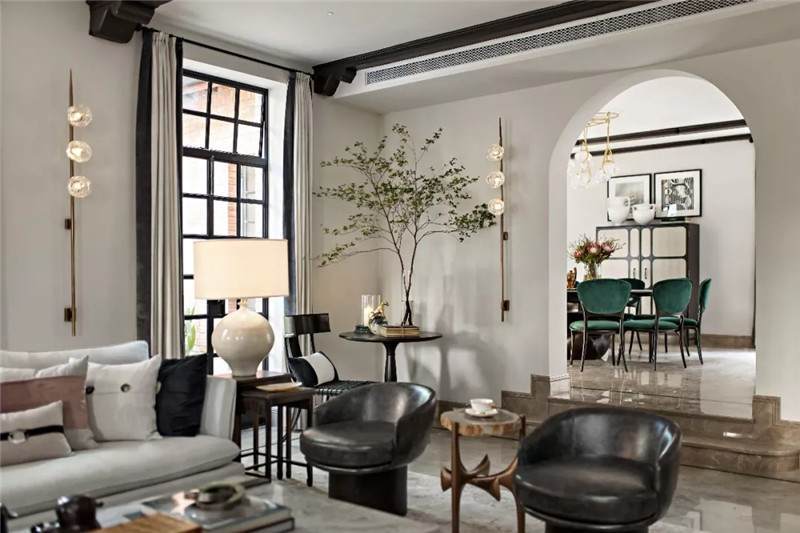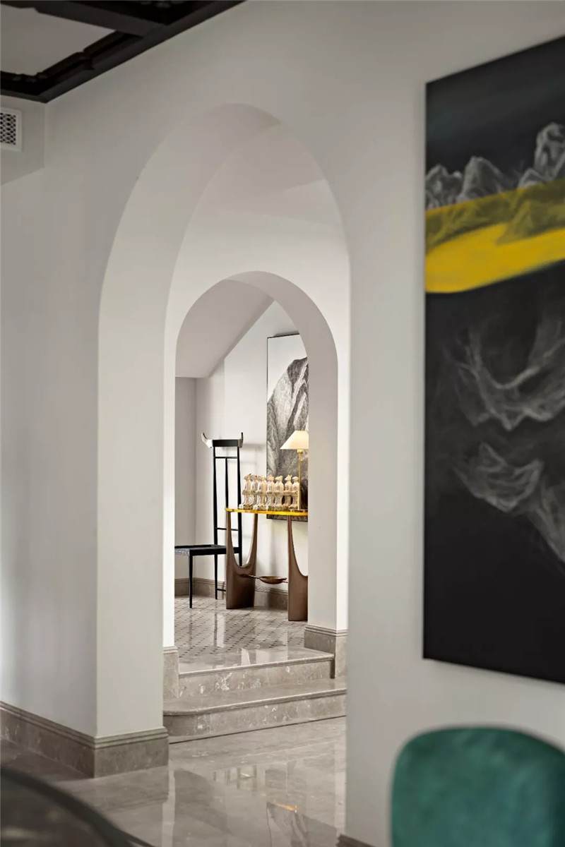 從建筑外觀到室內(nèi),拱門設(shè)計無疑是空間中最引人注目的亮點,經(jīng)典的幾何線條在空間交匯處劃下瀟灑自由的一筆,破格又落定,促成雙空間的融合。皆因設(shè)計師黃全對細(xì)節(jié)的一絲不茍,每一個構(gòu)件都在美學(xué)態(tài)度的牽引下找到最合適的表現(xiàn)形式。