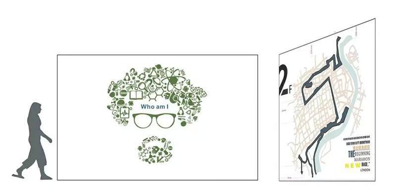 以上是本期課程第一個重點——環(huán)境圖形的內(nèi)容界定。它包括室內(nèi)的導(dǎo)視標識、一系列公司的文化展示,這兩塊內(nèi)容基本構(gòu)成了室內(nèi)環(huán)境圖形設(shè)計的設(shè)計內(nèi)容。