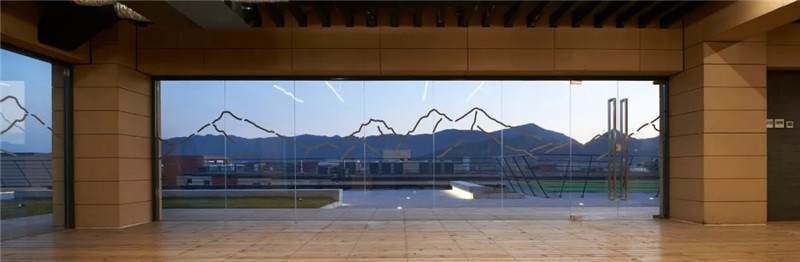 首先它起到防燥作用,其次在晝夜更替時,和山交相互應(yīng)。營造出黃昏落日,獨立孤舟的意境。類似這樣的設(shè)計是富有生命力的,更應(yīng)該去現(xiàn)場感受,建成以后在現(xiàn)場設(shè)計是新鮮生動的。