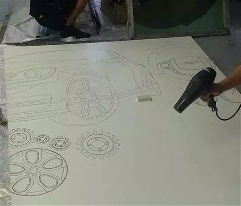 這幅畫是最初設(shè)計的圖案,圖形繪制的大粉筆畫,它的好處是可以定期的更換,就像黑板報一樣來制定不同的主題,就員工的活動,員工的留言簽字都可以在這體現(xiàn),如同活的展示墻。