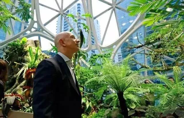 亞馬遜最新總部坐落在西雅圖商業(yè)區(qū),高達四層,是座熱帶雨林般的溫室建筑,由玻璃和白色鋼筋建造而成,老板杰夫·貝佐斯(Jeff Bezos)站在頂樓招呼員工。