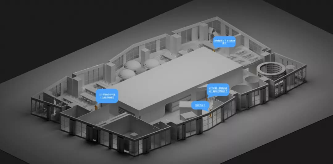 活動辦公區(qū)的圓頂造型再次運用了“圓形”元素,使得空間首尾呼應(yīng)。圓形的劃分使大面積的接待區(qū)在使用上更加靈活,網(wǎng)紗狀燈罩的設(shè)計增加了空間視覺上的朦朧感,使空間的使用更具舒適性。