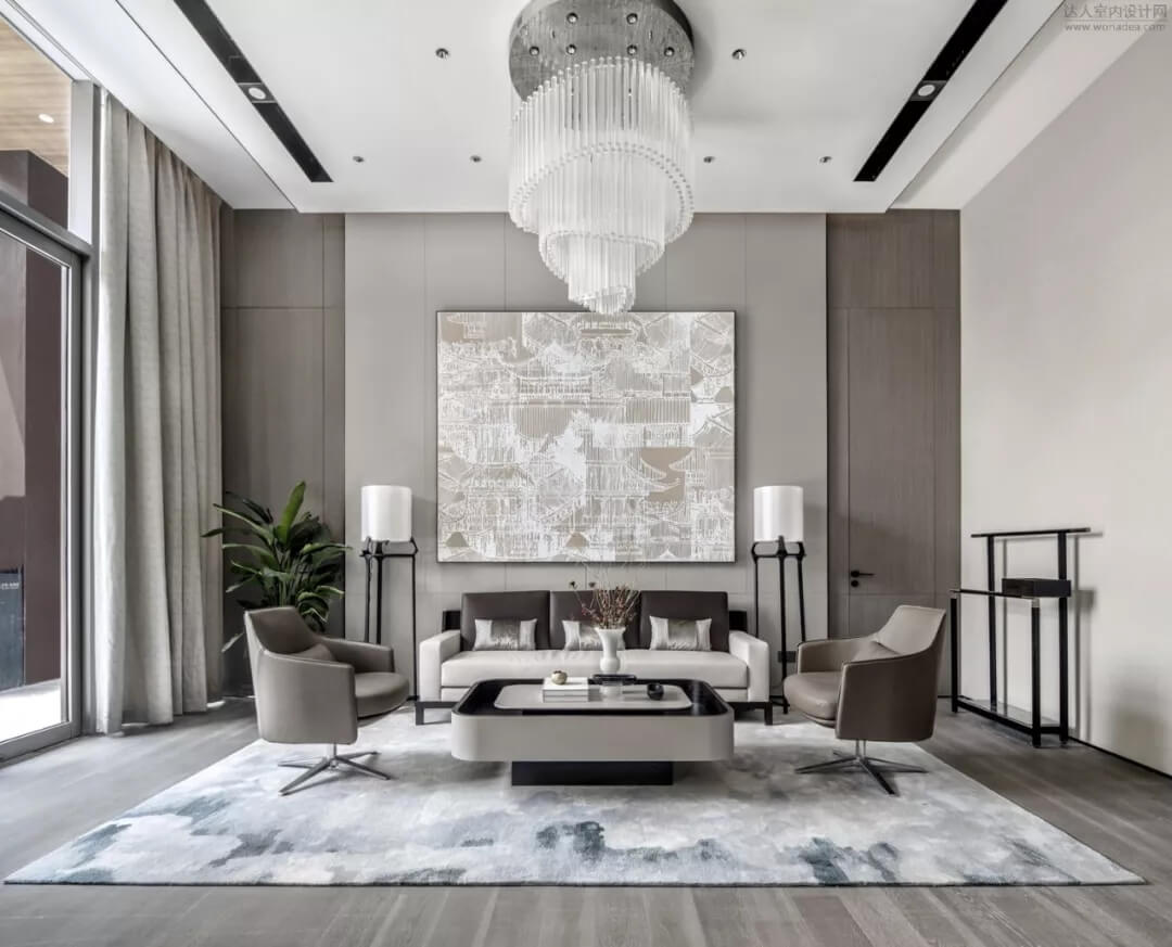 健身瑜伽、棋牌區(qū),作為高端小區(qū)的配套設(shè)施,也是體現(xiàn)了對客戶關(guān)懷,同時也是提升小區(qū)價值點的功能需求。在家居材料的選擇上采用高品質(zhì)工藝,當(dāng)代藝術(shù)品烘托氛圍,設(shè)計師用獨特的設(shè)計語言打造出延伸的空間意境。