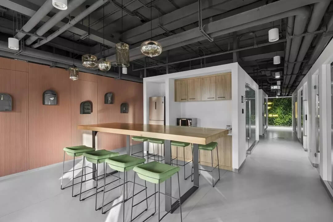 在空間劃分上,我們遵循城市綠色生態(tài)美學(xué),充分利用創(chuàng)新技術(shù)進(jìn)行模塊化設(shè)計(jì),將裝配式建造、節(jié)能低碳等許多新理念應(yīng)用到整個(gè)空間中去,將整體空間劃分成商務(wù)區(qū)、辦公區(qū)和休閑區(qū),具體到擁有獨(dú)立辦公室65個(gè),辦公工位464個(gè),會(huì)議室5個(gè),以及水吧、咖啡廳、休息艙、茶室、電話(huà)亭等共享區(qū),我們想要脫離傳統(tǒng)辦公空間的單調(diào)枯燥,讓一站式的休閑服務(wù)和辦公完美結(jié)合,觸達(dá)現(xiàn)代人內(nèi)心的深層需求,從而使整體設(shè)計(jì)方案在保持高品質(zhì)的同時(shí)做到高效、低成本。