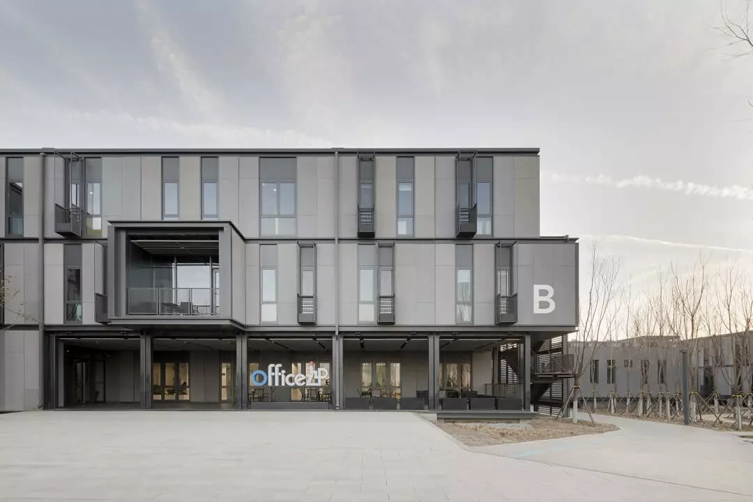 在雄安市民服務(wù)中心這塊占地面積廣達(dá)9.96萬(wàn)平方米的新生沃土上,有序林立著公共服務(wù)區(qū)、行政服務(wù)區(qū)、生活服務(wù)區(qū)、入駐企業(yè)辦公區(qū)四大建筑群落。而當(dāng)落眼于其中入駐企業(yè)辦公建筑群落中的B棟Officezip時(shí),不禁感受到從內(nèi)而外綻放著的生態(tài)綠意。