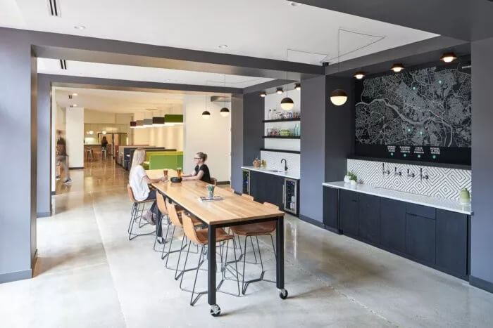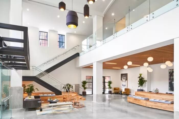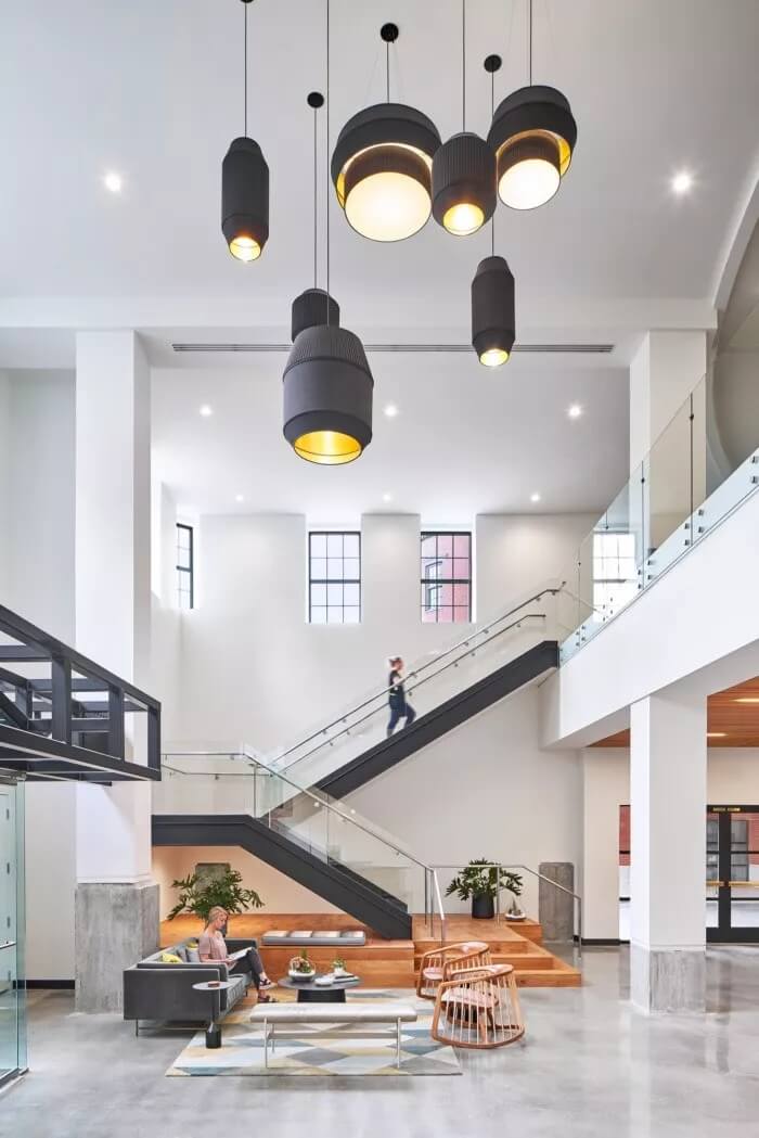 在整體美觀方面,3north剝離了裝飾性金屬制品,并將空間恢復(fù)為天然材料,干凈的線條和充足的自然光線。螺旋樓梯(一直是瓶頸交通的源頭)被拆除并簡化了形式和材料調(diào)色板。拋光混凝土地板和裸露的天花板為經(jīng)典,現(xiàn)代設(shè)計(jì)做出了貢獻(xiàn)。在整個(gè)過程中,該建筑向后退一步,將焦點(diǎn)放在本地藝術(shù)和手工藝上。這是一個(gè)為員工本人打造的空間,無論員工的工作方式,當(dāng)前的心情或聚會(huì)的方式如何,他們都可以高效地工作,而且最重要的是可以激發(fā)靈感。