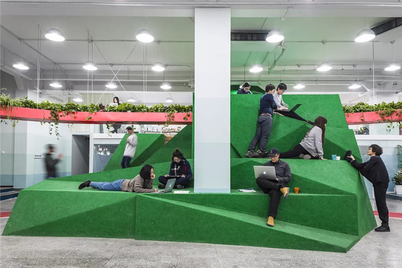 樂平基金會是一家以社會創(chuàng)新著稱的非營利機構(gòu)。在他們1100㎡的辦公空間中,我們提出的基礎(chǔ)理解是適度的身體活動對大腦有益:劇烈運動通常會影響工作,但適量的活動則反而有益。在工作的同時進行一定程度的輕微運動,健康的效果堪比短暫的劇烈運動。因此設(shè)計提供了大量邊工作邊活動的機會,豐富辦公模式,也增加休息的途徑。