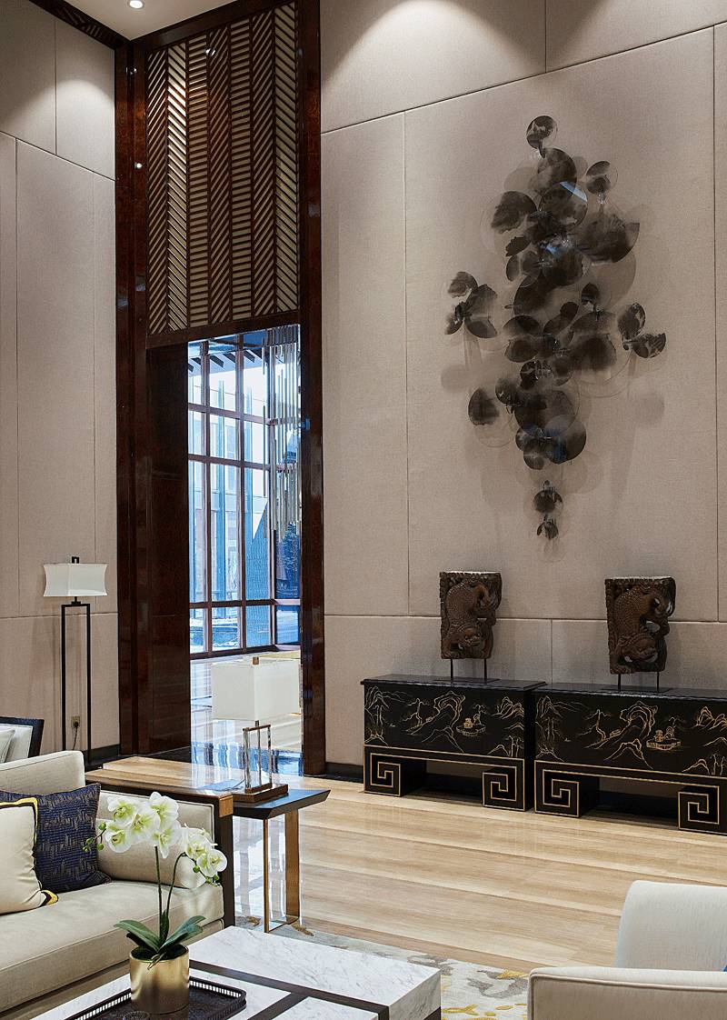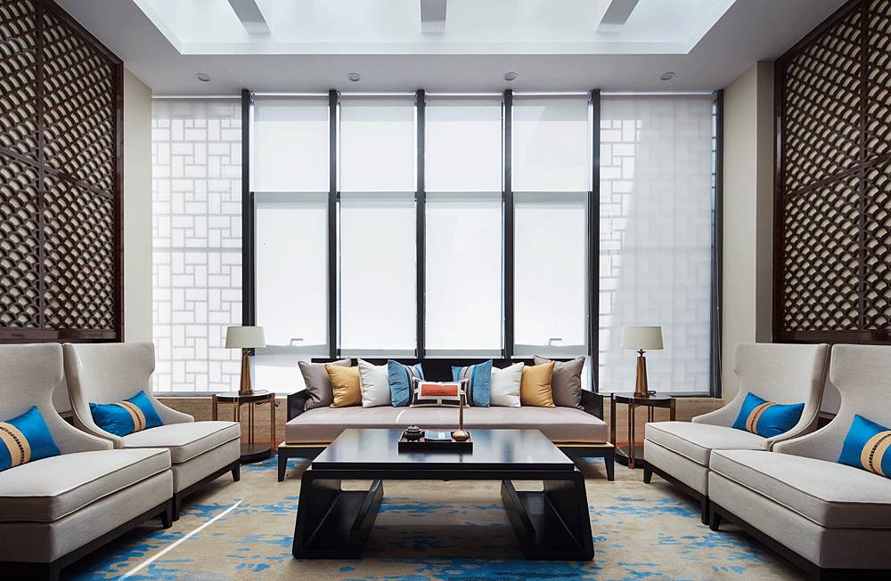 沙盤(pán)區(qū)采用簡(jiǎn)單、大氣的設(shè)計(jì)手法,沒(méi)有濃墨重彩的奢華場(chǎng)景,更多的是將歷史古都的韻味帶到細(xì)節(jié)中,如格柵、窗欞、黛青色擺件、意境掛畫(huà)等東方元素都透露著古韻,并融入大理石、玻璃、燈帶等現(xiàn)代材料,在營(yíng)造意境的同時(shí)兼顧場(chǎng)所的使用功能。