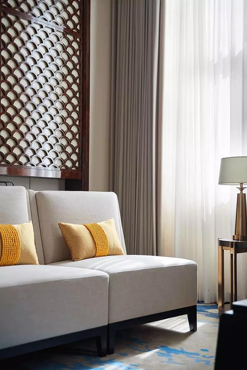 VIP區(qū)域以雅致的米白色和簡(jiǎn)化的線條打底,奠定空間的基調(diào),為提升舒適度,沙發(fā)椅選擇造型簡(jiǎn)約的現(xiàn)代款型,通過(guò)線條的弧度拿捏出中式的味道。