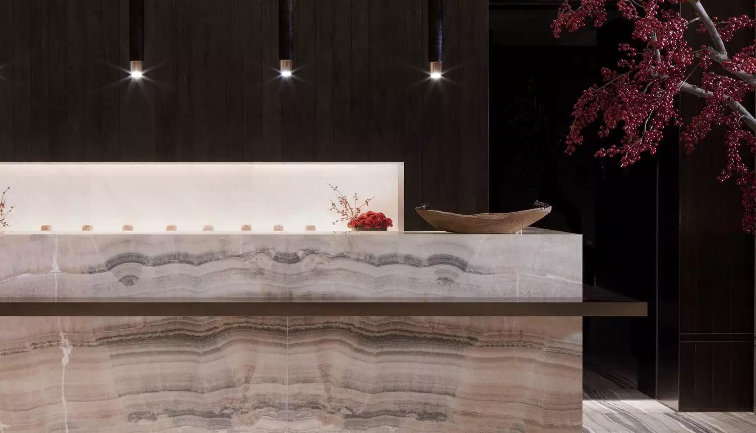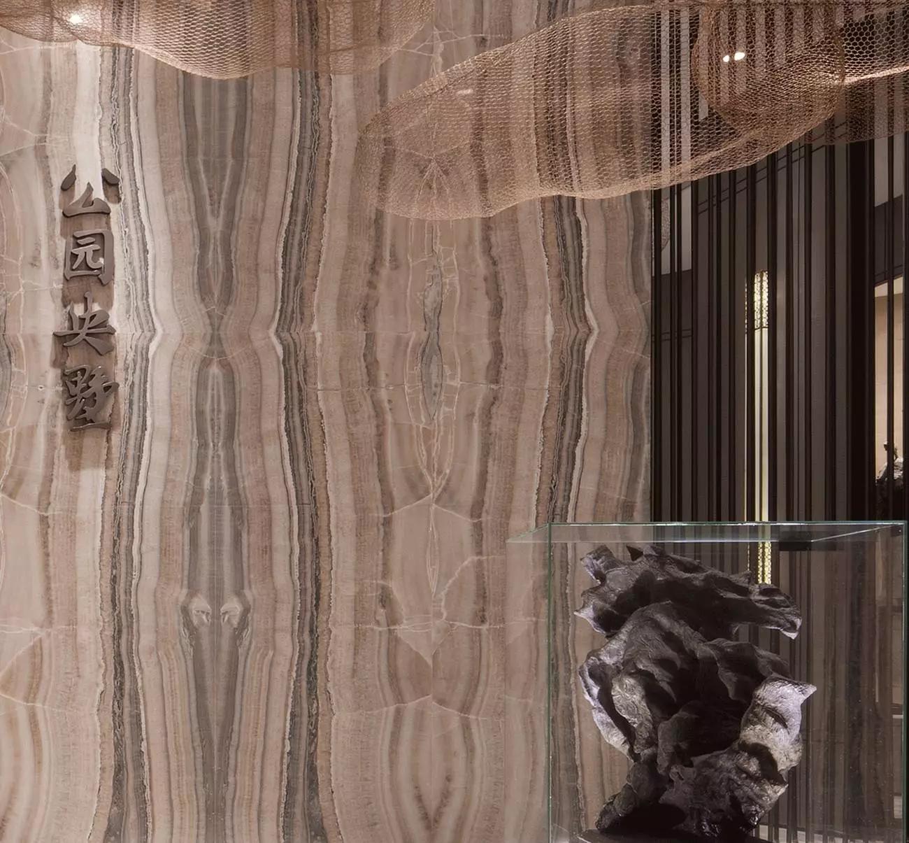 本案以石頭記,石、玉等文化底蘊為依托,以中國貴族式建筑園林空間意趣的室內(nèi)化為框架,從大觀園的軒、館、院、齋等建筑中提煉文化意蘊、色彩、藝術、布局、材質(zhì)等為元素,通過現(xiàn)代東方禪意美學的組合方式,將尊貴,私密,自然,精神滋養(yǎng)等理念貫穿所有空間,呈現(xiàn)出純凈高貴的意象之美。