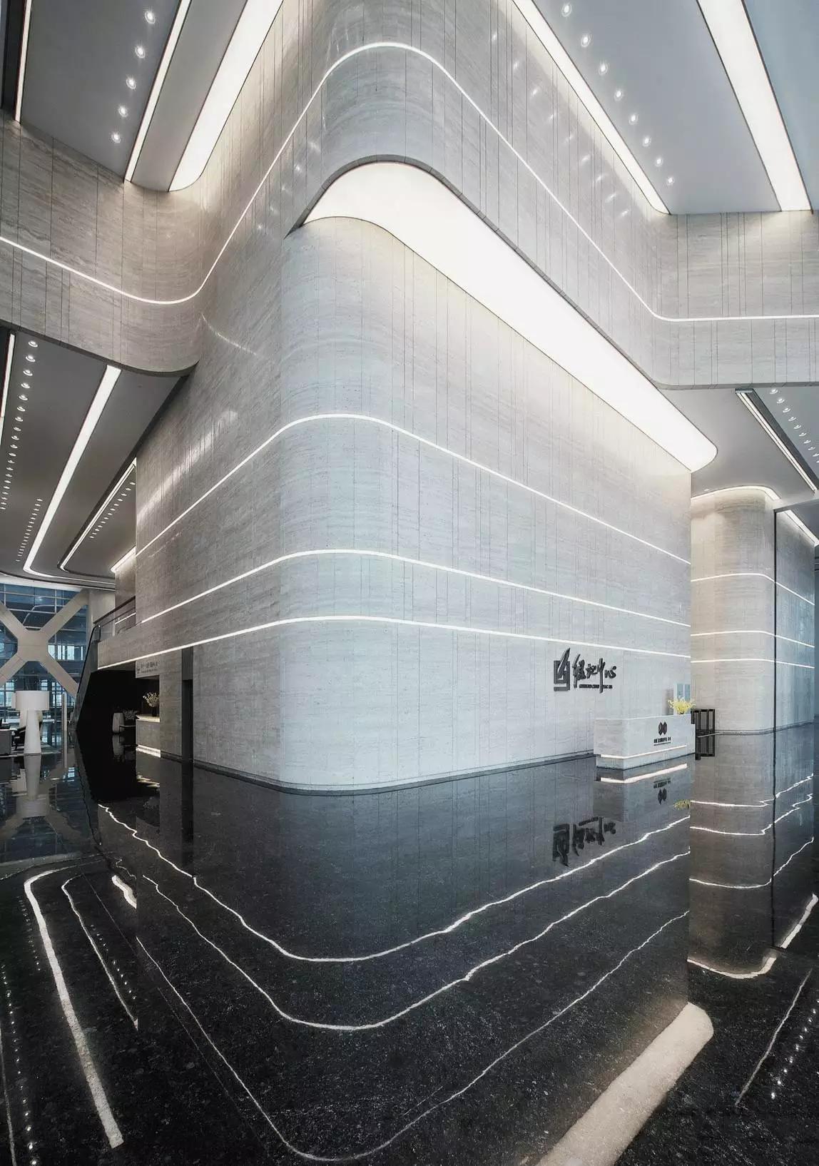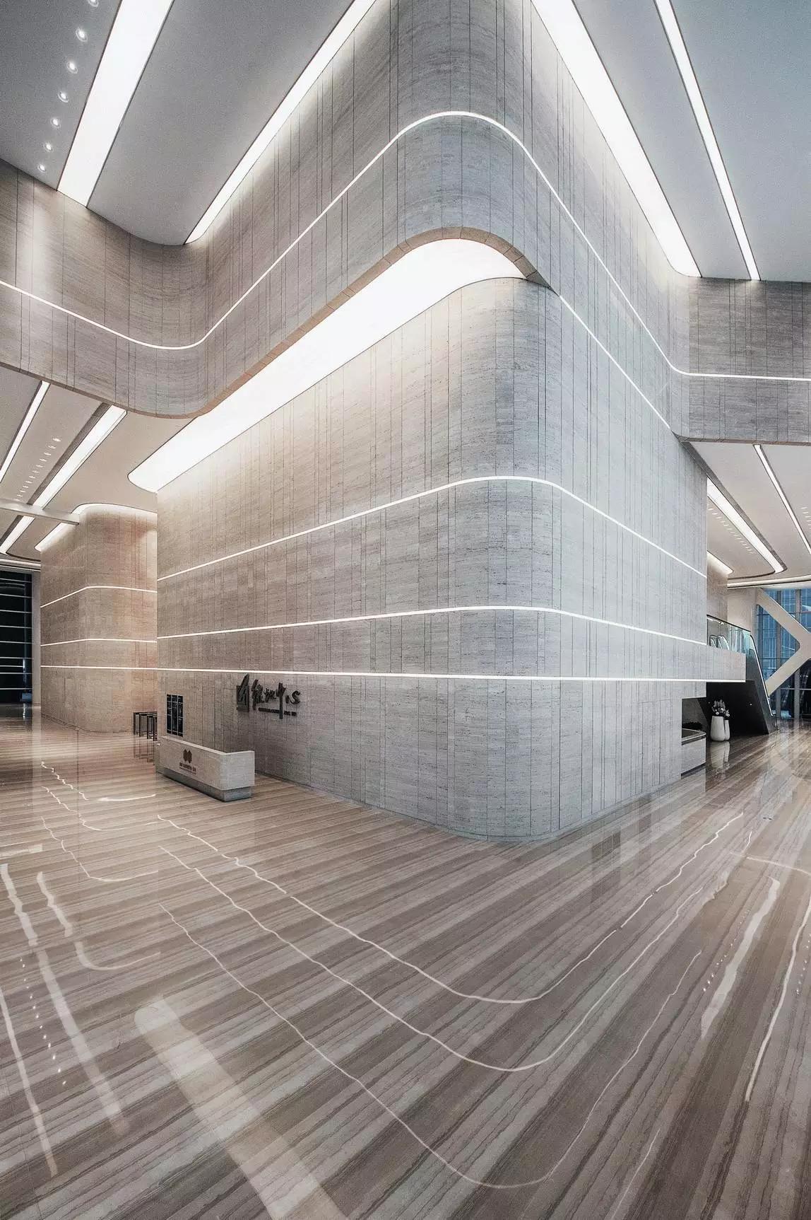 大堂設(shè)計將空間塑造作為首選,將形式、質(zhì)感、光與影等要素組合融入,創(chuàng)造性的表達(dá)空間的品質(zhì)和精神,放棄了多余的裝飾與造型,著重展現(xiàn)室內(nèi)空間與建筑空間的統(tǒng)一性。