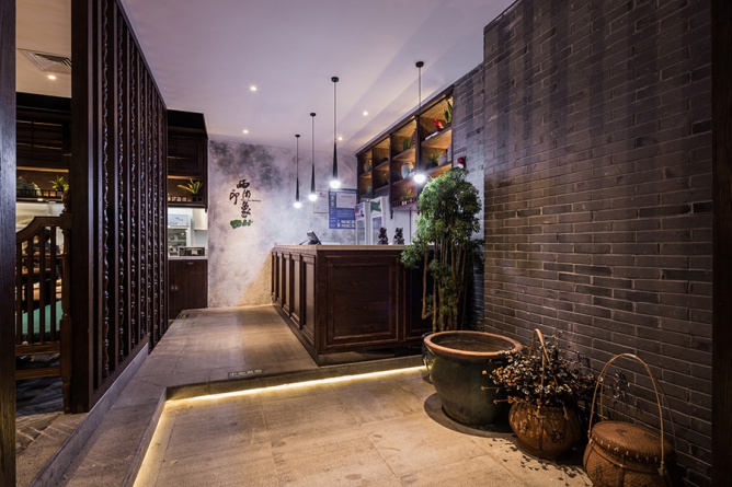 從遠(yuǎn)處望過來,一座江南小院落入眼中,白墻青瓦小橋流水,以清靈的體態(tài),展示萬般風(fēng)韻。 經(jīng)典的江南建筑別有恬靜內(nèi)秀的韻味,而江南院落給人一種,優(yōu)雅、寧?kù)o、親切的感覺,正是生活在浮躁社會(huì)中的我們所缺失的,所以在本案中設(shè)計(jì)師以江南的小院的作為此次設(shè)計(jì)主題。無論是舊時(shí)還是依稀,江南水鄉(xiāng)的一山一水一物,均是文人墨客筆下的絕妙勝景,盡顯江南的風(fēng)情。而這次,跟緊我的腳步來領(lǐng)略屬于江南的意境。 整個(gè)店面的平面布局是根據(jù)江南小院建筑布局來延伸切入,以格局的形式將餐廳分成了院入口,陽臺(tái),閨房等五大板塊。江南建筑,高低錯(cuò)落,古樸幽靜,含蓄內(nèi)斂。 有的枕山面水,有的面河而居,有的夾河而造,清澈的河水,輕盈的小橋,窄窄的街巷,深深的庭院,凝練成江南水鄉(xiāng)傳統(tǒng)民居的典型意境。 為了把這意境體現(xiàn)的淋漓盡致,設(shè)計(jì)師將入口處抬高,錯(cuò)落有致,營(yíng)造出“曲徑通幽處,禪房花木深”的氛圍,令人漸入佳境,而這對(duì)空間的分割,避免平鋪直敘的蒼白,也是為餐廳增添了幾分寧?kù)o。 |